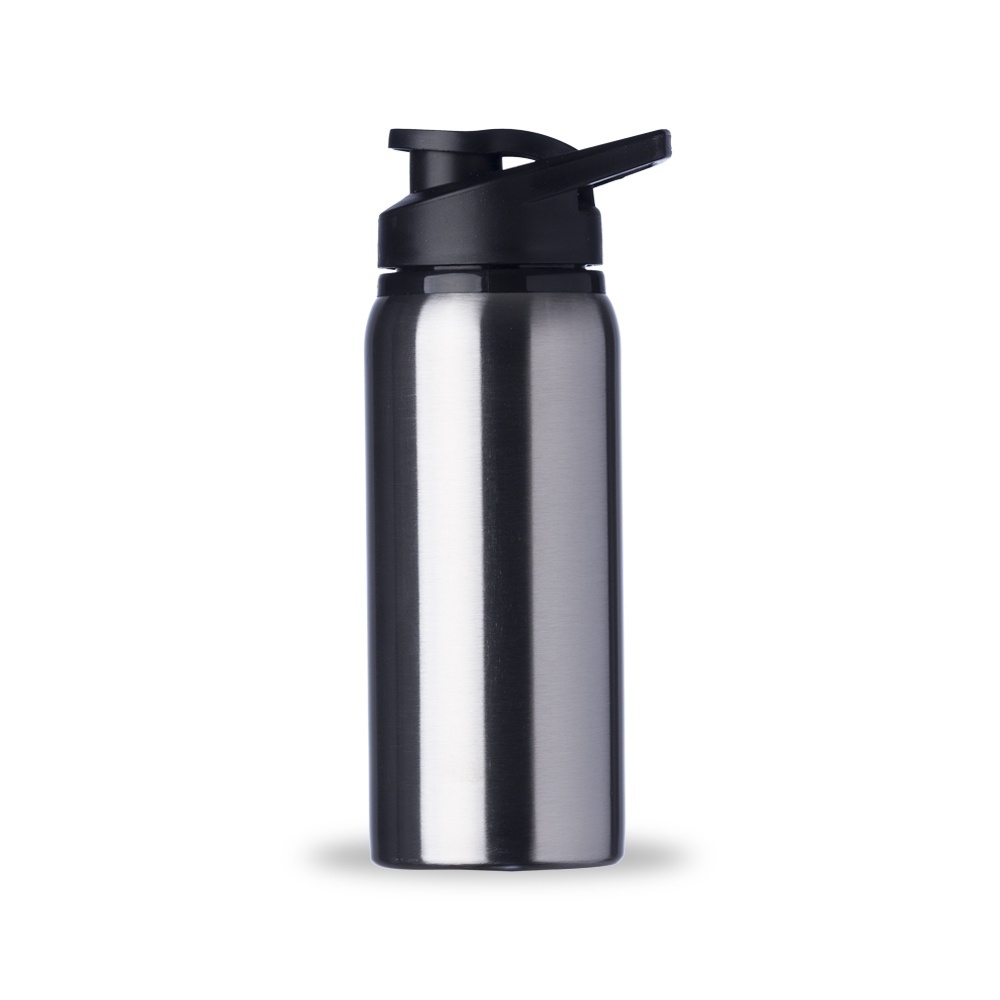 Squeeze alumínio de 600ml com pintura brilhante e fosco. Squeeze com tampa plástica rosqueável, alça e tampa protetora para o bocal.