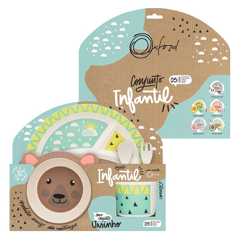 A segurança vem em primeiro lugar quando o assunto são crianças. Ainda mais se for sobre a alimentação delas. A Oxford apresenta esse conjunto totalmente seguro e muito prático para servir as refeições infantis. Feitos com fibra de bambu, esses produtos são amigos da natureza e atóxicos. E ainda contam com lindas estampas! Esse produto não pode ser usado em forno convencional e de micro-ondas. Recomenda-se a utilização com temperaturas entre -20ºC e 70ºC.