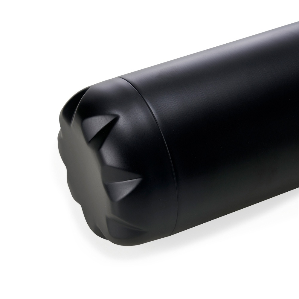 Garrafa térmica de inox com acabamento fosco, capacidade de 1 litro. Contém tampa de vedação rosqueável com detalhe externo em relevo.