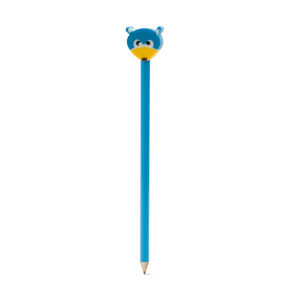 Lápis personalizado com borracha no formato de bonequinhos infântis. Ideal para divulgar sua empresa em eventos corporativos, brindes personalizados e campanhas promocionais infântis.