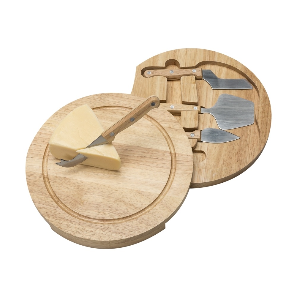 it queijo 5 peças, possui tábua de bambu com detalhe circular em relevo na parte superior e parte inferior com borrachas antideslizantes. Contém faca reta, espátula, faca com ponta e garfo em inox. Para abrir basta rotacionar a tampa. Faca reta 18,5 cm x 4,5 cm – Espátula 19,2 cm x 7 cm – Faca com ponta 16,2 cm x 2,8 cm – Garfo 18,3 cm x 3,4 cm