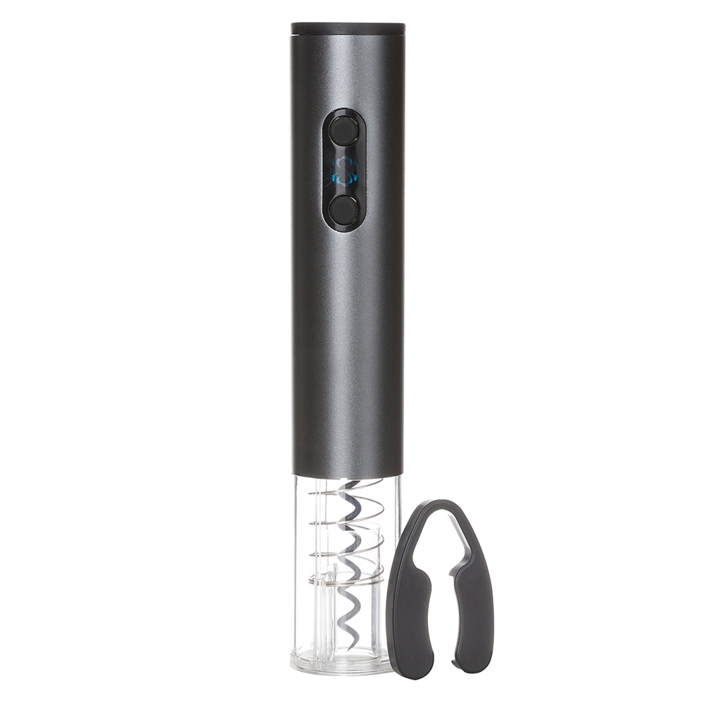 Saca rolhas elétrico com LED e cortador de lacre. Parte superior em alumínio e parte inferior acrílica, possui compartimento superior com tampa para 4 pilhas AA (não acompanha pilhas), painel com iluminação LED e botões para extração e remoção de rolhas. No modo extração a área acrílica é iluminada pelo LED. Acompanha cortador de lacre. OBS.: Não afundar o produto na água ou qualquer outro tipo de líquido.