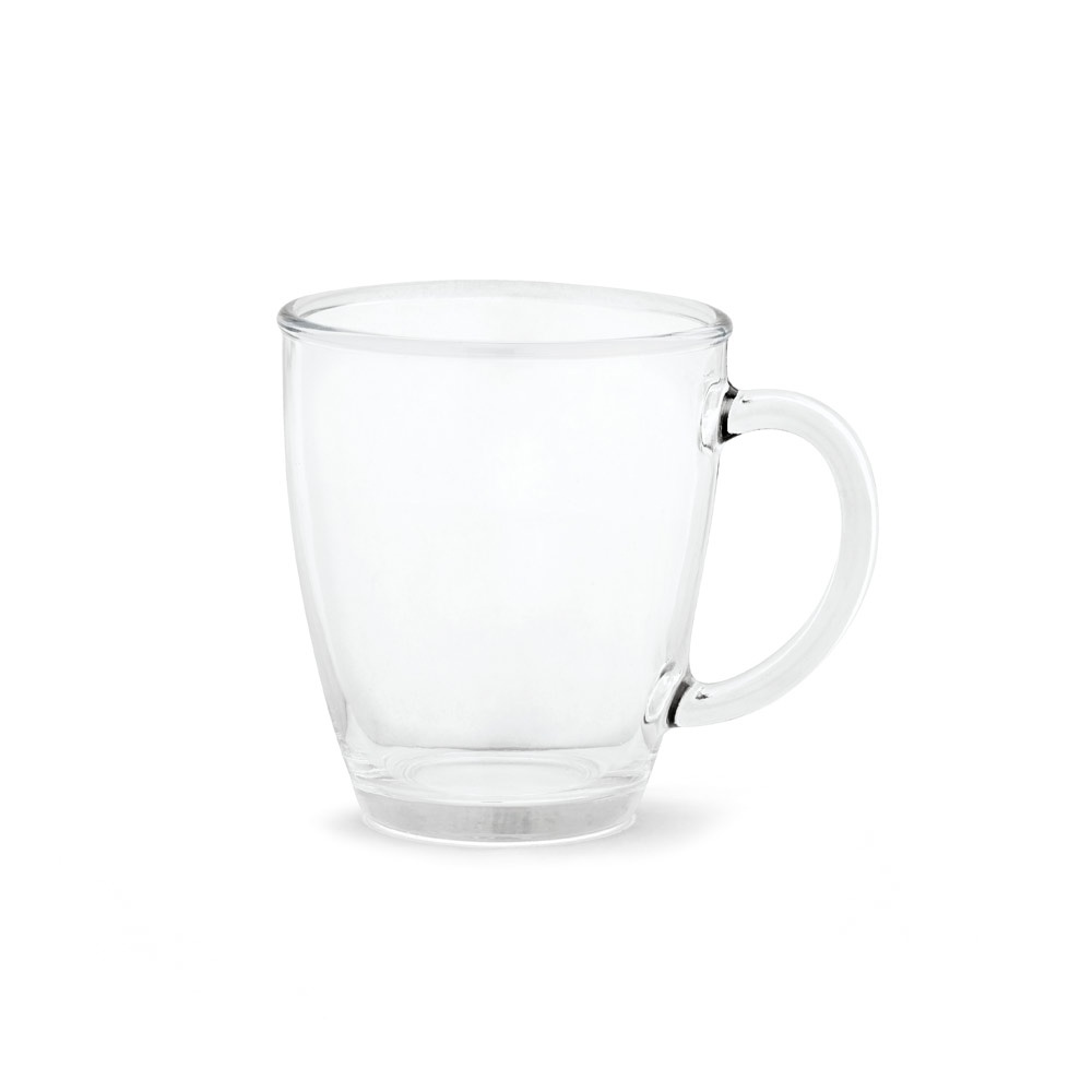 Caneca em vidro com capacidade até 390 ml. Food grade. Fornecida em caixa.