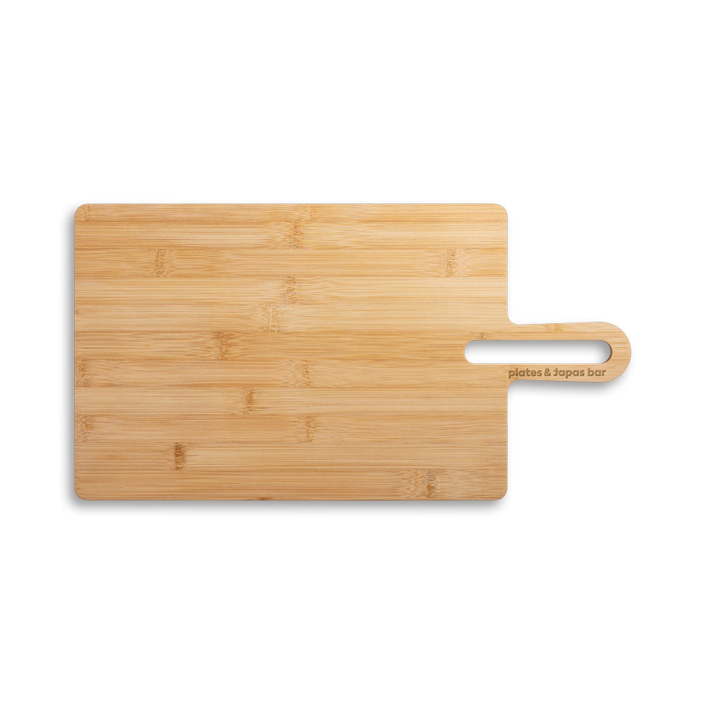 Tábua de servir em bambu com pega, de grande dimensão e de utilização versátil.