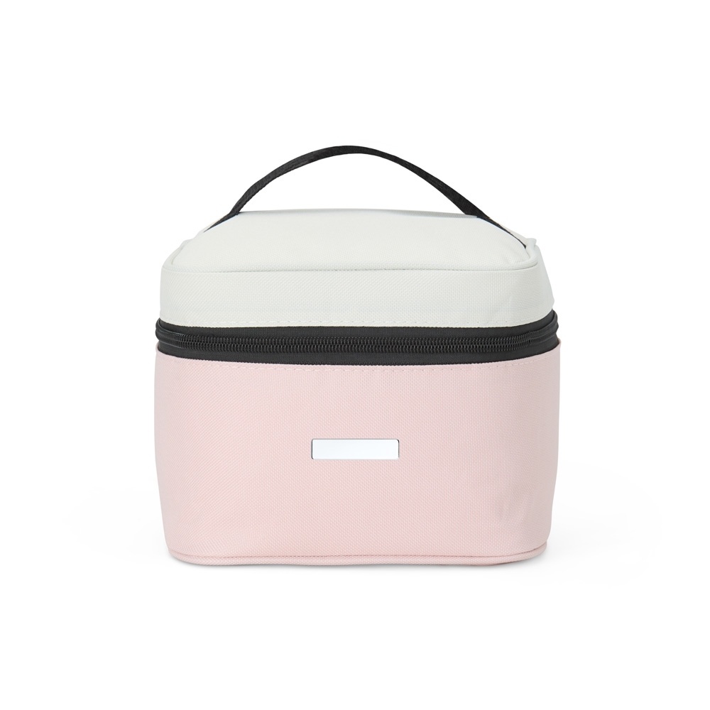 Bolsa térmica de nylon 4 litros. Possui bolso telado e acompanha plaquinha metálica.