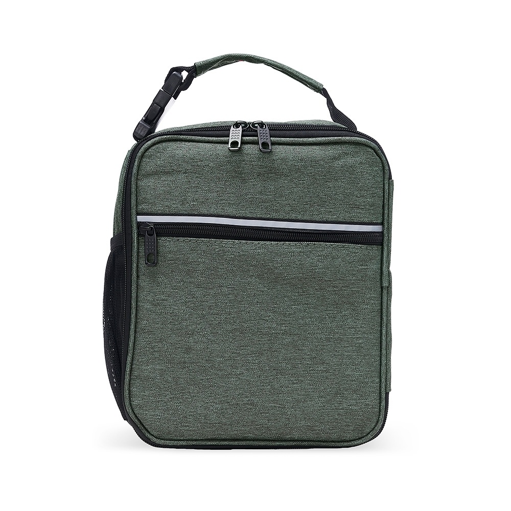 Com bolso telado e tela média de proteção interna, a bolsa possui uma faixa frontal refletiva, bolso lateral telado e alça de mão com fivela de encaixe. capacidade de 6 litros.