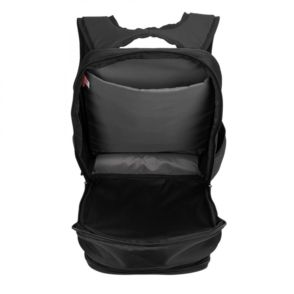 | Compartimento acolchoado exclusivo para notebooks de até 15,6″, com alças de segurança para maior proteção. |