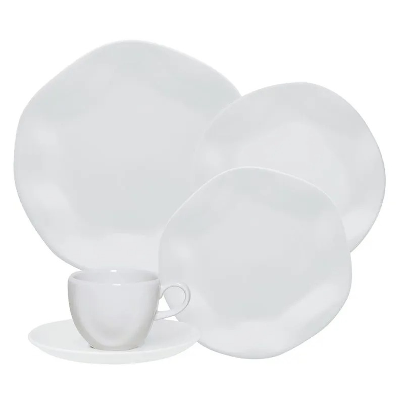 | 6 Pratos rasos 27,5 cm / 6 pratos fundos 22,5 cm e 4,5 cm de altura / 6 pratos de sobremesa 21,5 cm / 6 xícaras de chá 220 ml com pires 16 cm |