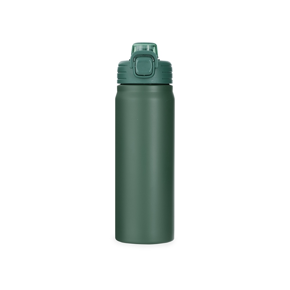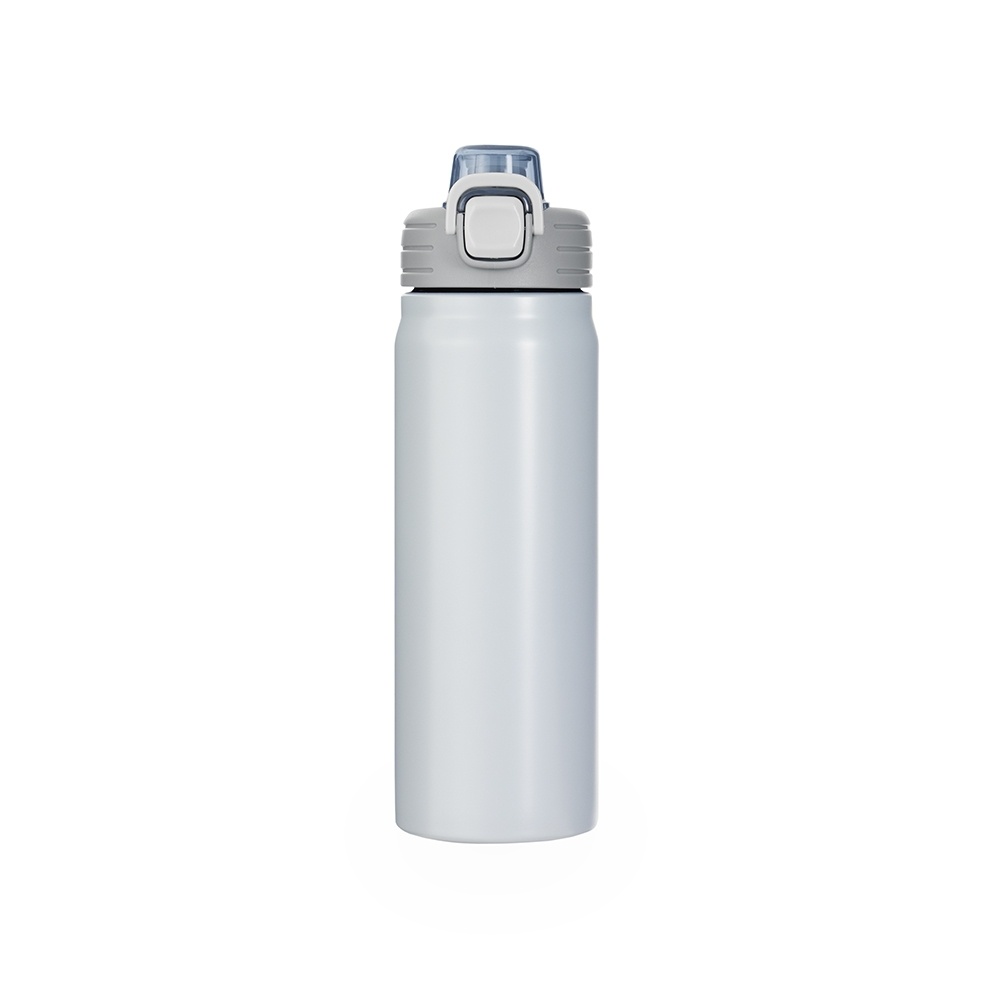 Possui estrutura de parede dupla e vedação a vácuo, permitindo a conservação da temperatura de líquidos por mais tempo. Conta com tampa rosqueável com trava de segurança, botão de acionamento para abrir a tampa protetora do bocal e alça para transporte.