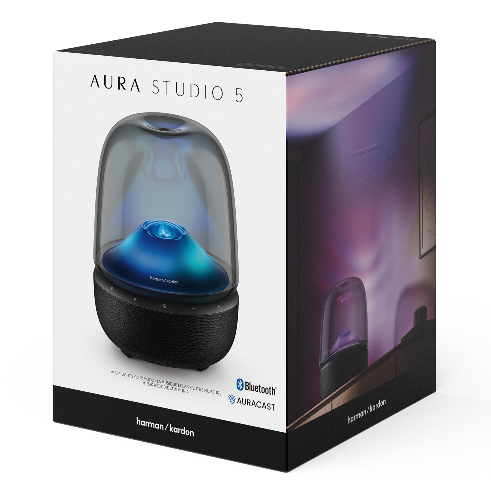 A Harman Kardon Aura Studio 5 une som e luz para transformar sua música em uma experiência sensorial completa. Ao transmitir sua música por Bluetooth, uma luz ambiente irradia de sua cúpula transparente icônica, transformando o ambiente do seu jeito. Com diversas opções de iluminação, mergulhe em uma atmosfera tranquila com luzes azul-esverdeadas suaves que ondulam como a água. Ou crie o clima com luzes quentes que tremulam como fogo para noites divertidas com amigos. A tecnologia Constant Sound Field preenche cada canto do ambiente com um áudio rico e imersivo, repleto de detalhes nítidos e vibrantes. Não importa o clima que você escolher, a Aura Studio 5 torna cada momento inesquecível.